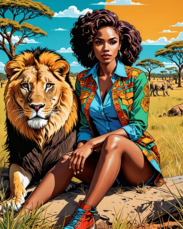 Step into the wild heart of strength and grace with Beauty and Her Beast. This striking artwork captures an unspoken bond between courage and calm — a fearless woman beside a majestic lion, surrounded by the golden plains of the savanna. Every hue tells a story of power, protection, and harmony between nature and spirit. It’s a tribute to inner strength and quiet confidence.